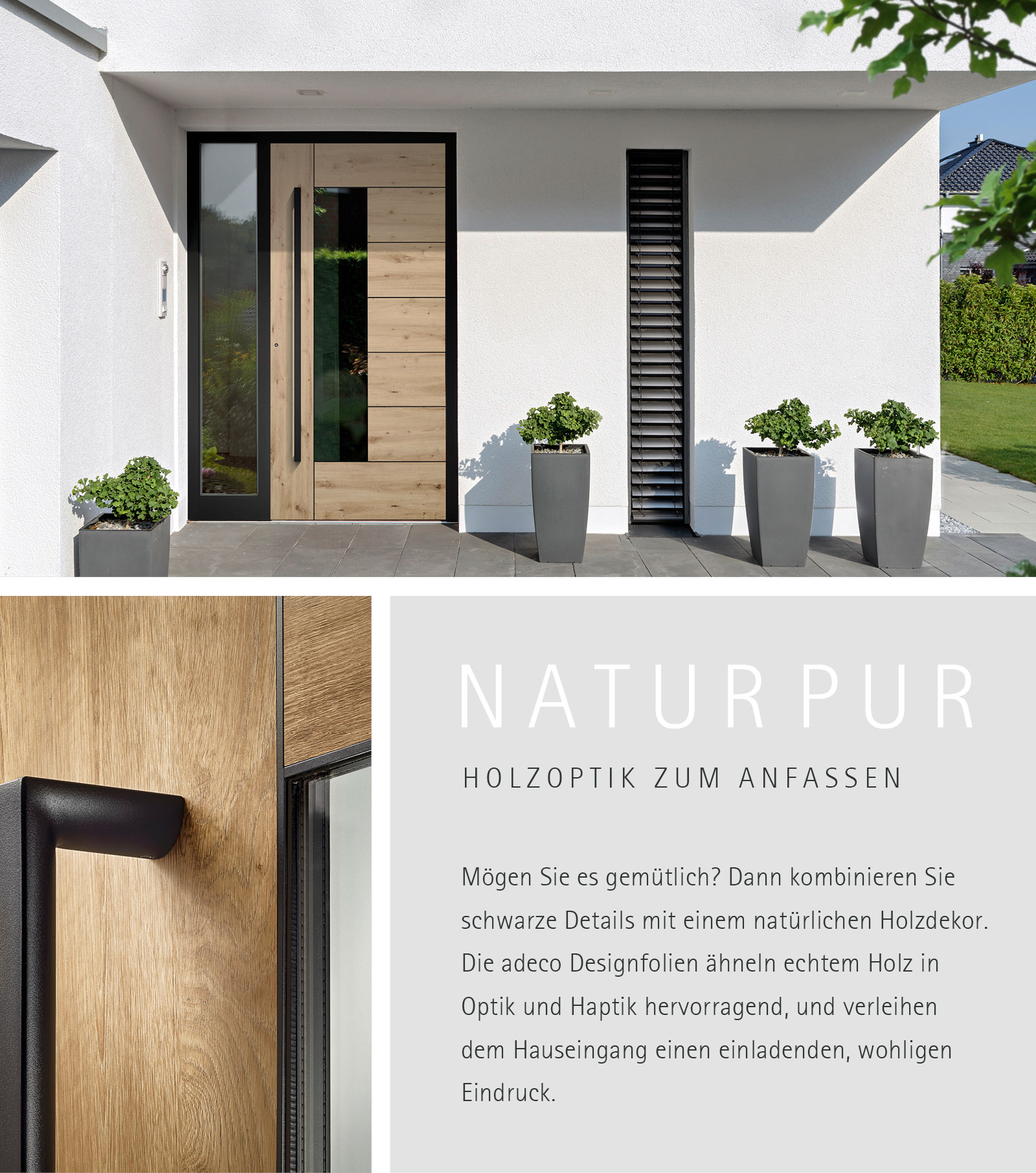 Mit einer Haustürfüllung aus der Manufaktur adeco wird Ihre Haustür unverwechselbar und einmalig. So wie Sie. Gestaltung, Farbe und Material kennen keine Grenzen. Form trifft Funktion. Unsere Türfüllungen gehen mit den tragenden Elementen Ihres Türsystems die perfekte Symbiose ein. Das ist für Haustüren Design, Sicherheit und Energieeffizienz in Vollendung. Erleben Sie die neue Decenta-Klasse.