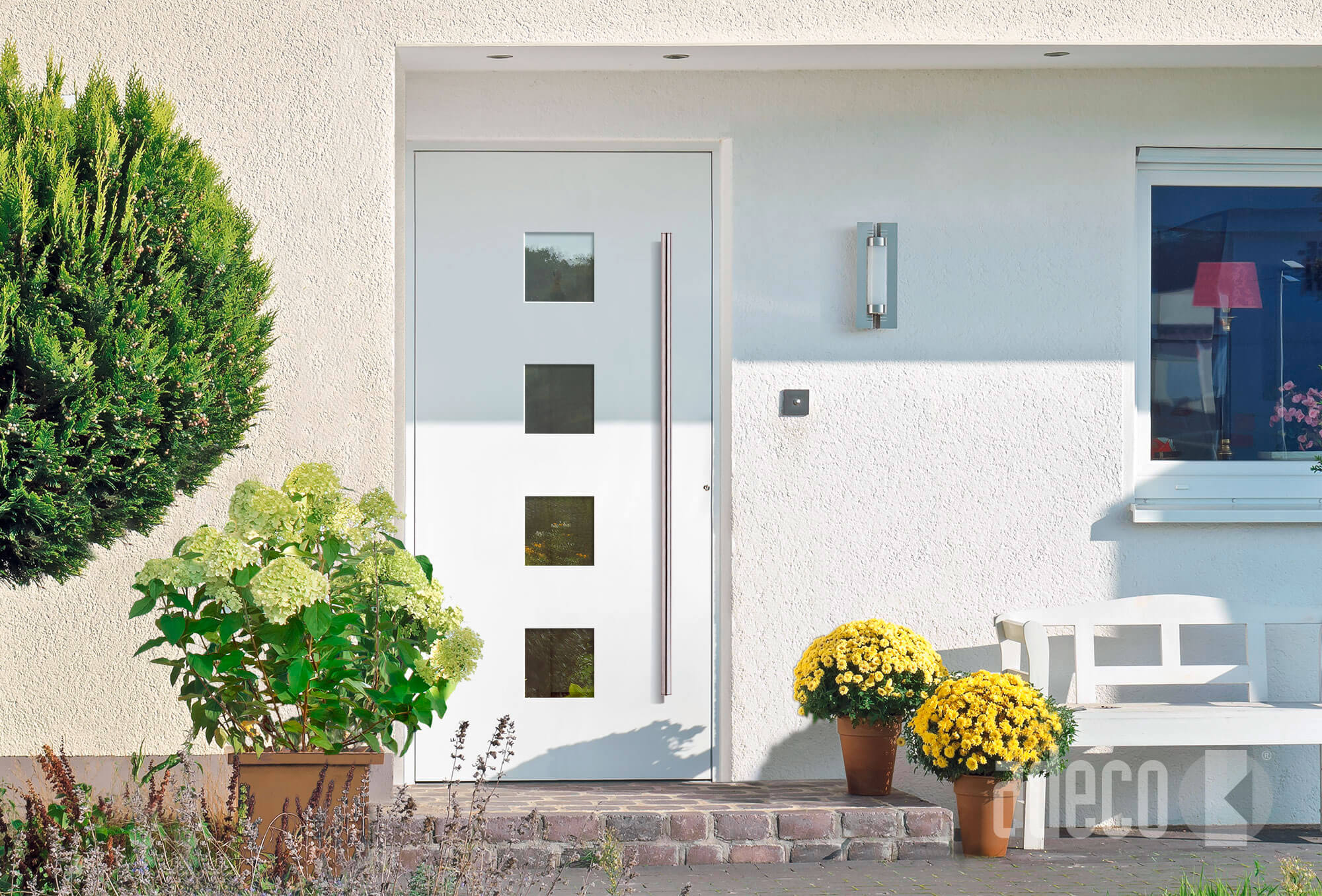 Details: 4 Felder verglast, in Ausführung Aufsatzfüllung, Klarglas plan, mit integriertem Griff HA 591, Edelstahl matt gebürstet