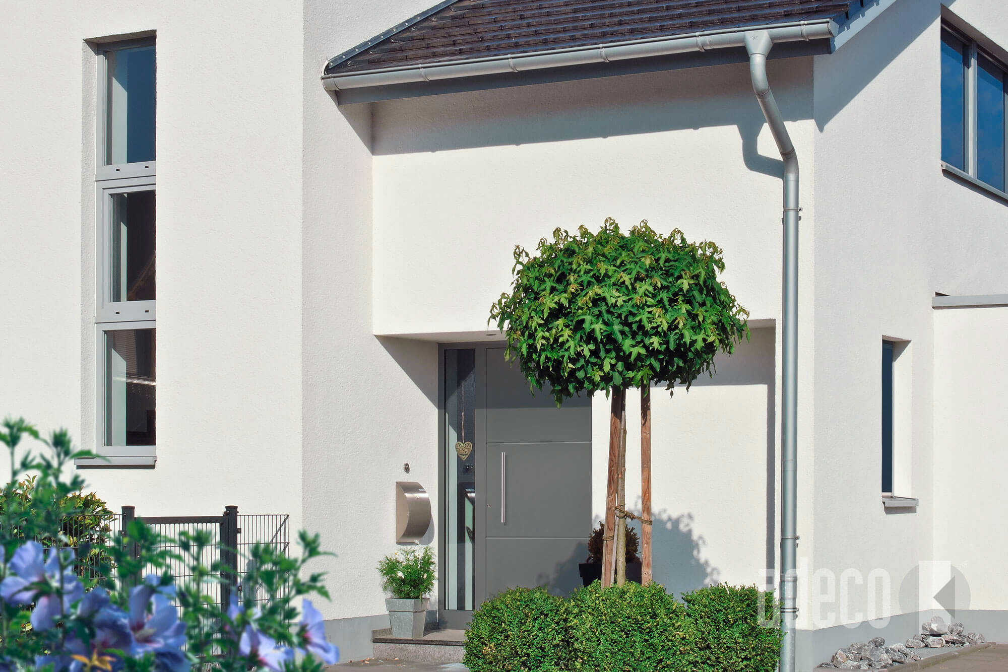 Details: geschlossen, in Ausführung Aufsatzfüllung, Farbvariante Finea 310, mit integriertem Griff HA 451, Edelstahl matt gebürtstet, mit Seitenteilverglasung, Klarglas plan