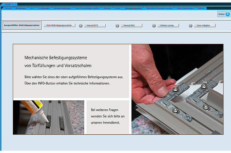 Und es gibt noch eine zweite Neuerung: Im AOP können nun alle Befestigungssysteme erfasst werden, die wir in unserer Bestellanlage aufführen.
