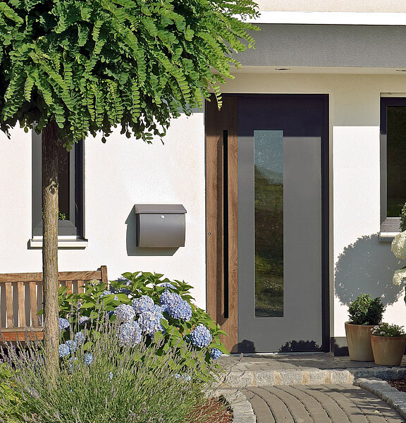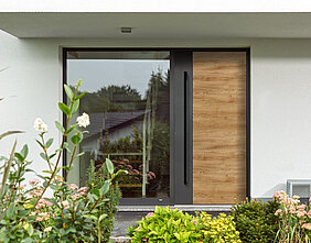 Entdecken Sie die Vielfalt dieser Tür und gestalten Sie das Modell für Ihren Hauseingang in unserem Konfigurator. Das Türblatt ist in zwei Teilbereiche aufgeteilt, die Sie in unterschiedlichen Farben und Oberflächen erhalten können.