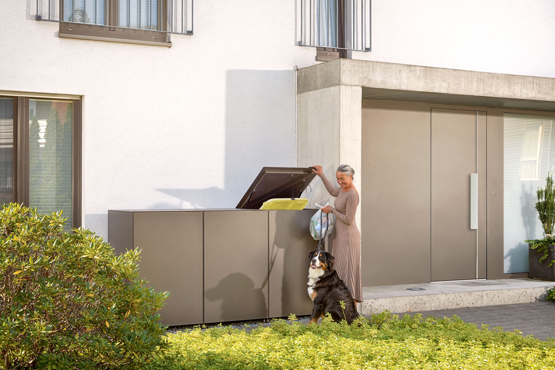 So entstand die Idee für modulare Stauraumlösungen aus pulverbeschichteten Aluminium für den Außenbereich. Dabei konnten die Erfahrungen aus dem Haustürfüllungsbereich von der adeco in die Entwicklung mit einfließen. Getreu dem Credo „Wir brauchen nicht mehr Produkte, sondern wir brauchen bessere“ begann ein Entwicklungsprozess, der mit dem ersten Produkt zunächst eine Nische erschließen sollte: Stauraumlösungen für Mülltonnen.