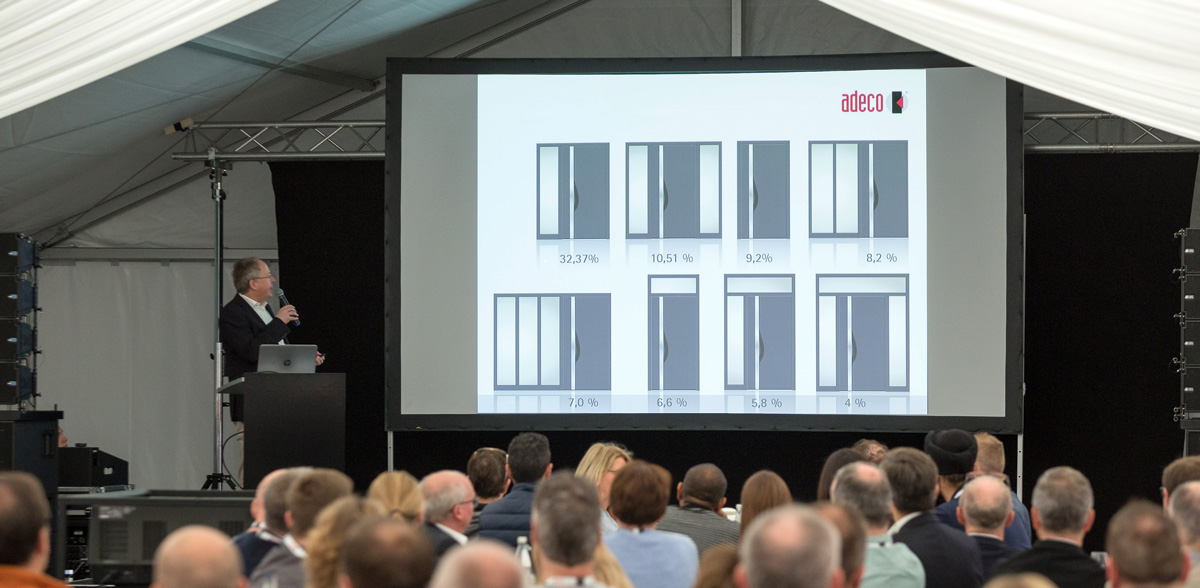 L'homme en tant qu'individu est au centre : « Nous sommes convaincus que les affaires sont conclues entre les individus », déclare le directeur M. Christian Reckendrees. Cette parole a du poids. adeco s'engage, de cette manière et pour ses clients, à devenir encore meilleur, et ce chaque jour un peu plus. Car pour adeco, la fabrication de panneaux de porte est plus qu'un processus investi sur l'efficacité. Christian Reckendrees : « Nous sommes fiers lorsque nos clients sont satisfaits et fiers de découvrir lors de nos déplacements des portes d'entrée équipées de nos panneaux. »