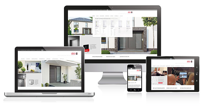 Il Design é un tema importante per l’adeco.Non solo per quanto riguarda i Pannelli per portoncino ma anche il Design della pagina Web. Per ottimizzare l’accesso alla nostra pagina Web per Smartphones e Tablets cosí come iPhone e iPad, abbiamo riorganizzato la pagina web. Il Responsive Webdesign (RWD) del nuovo Sito ha riguardo per la molteplicitá degli apparecchi utilizzatori. Per il Configuratore l’attualizzazione a Responsive Webdesign avverrá alla fine dell’anno.