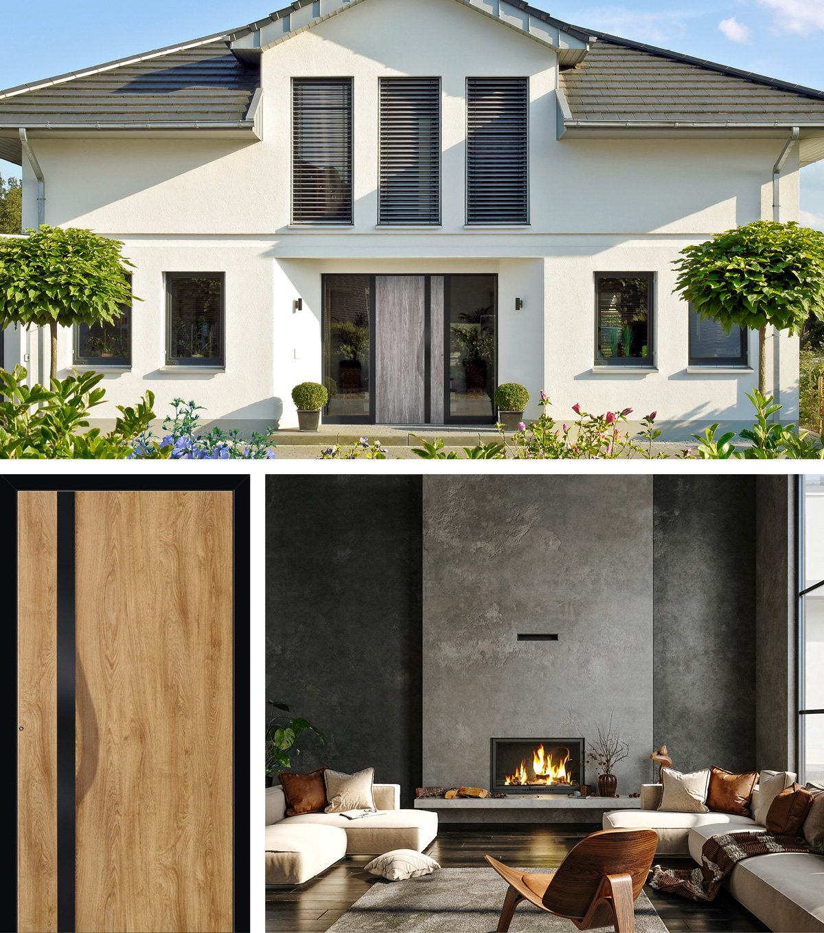 Vi piace l'intimità? Abbinate poi i dettagli neri a un arredamento in legno naturale. Le pellicole di design adeco hanno l'aspetto e la sensazione del vero legno e danno all'ingresso un'impressione invitante e accogliente. Scegliete tra le quattro tonalità del legno invitanti: malto, natura, cemento e alpino.