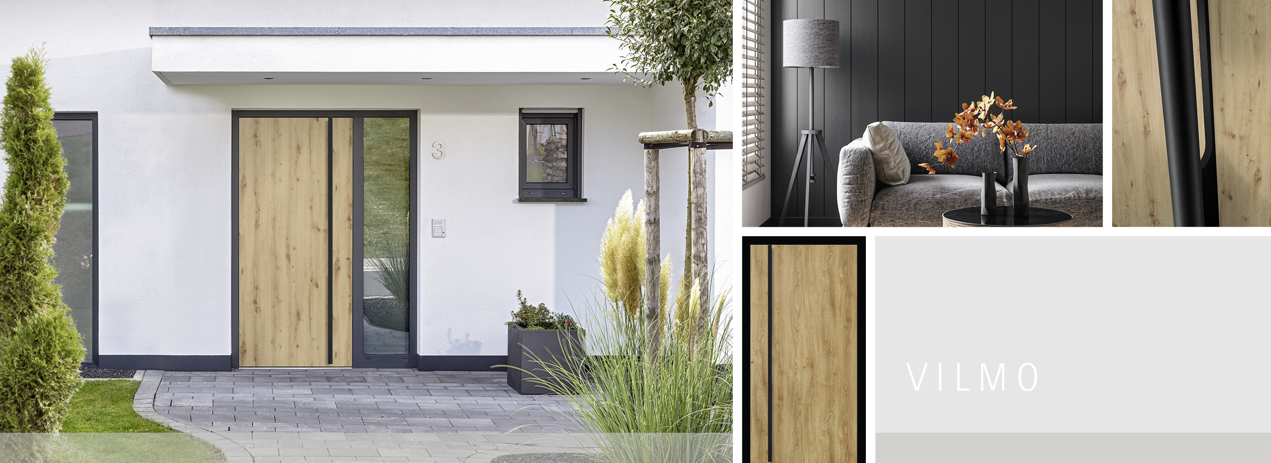 Vi piace l'intimità? Abbinate poi i dettagli neri a un arredamento in legno naturale. Le pellicole di design adeco hanno l'aspetto e la sensazione del vero legno e danno all'ingresso un'impressione invitante e accogliente. Scegliete tra le quattro tonalità del legno invitanti: malto, natura, cemento e alpino.