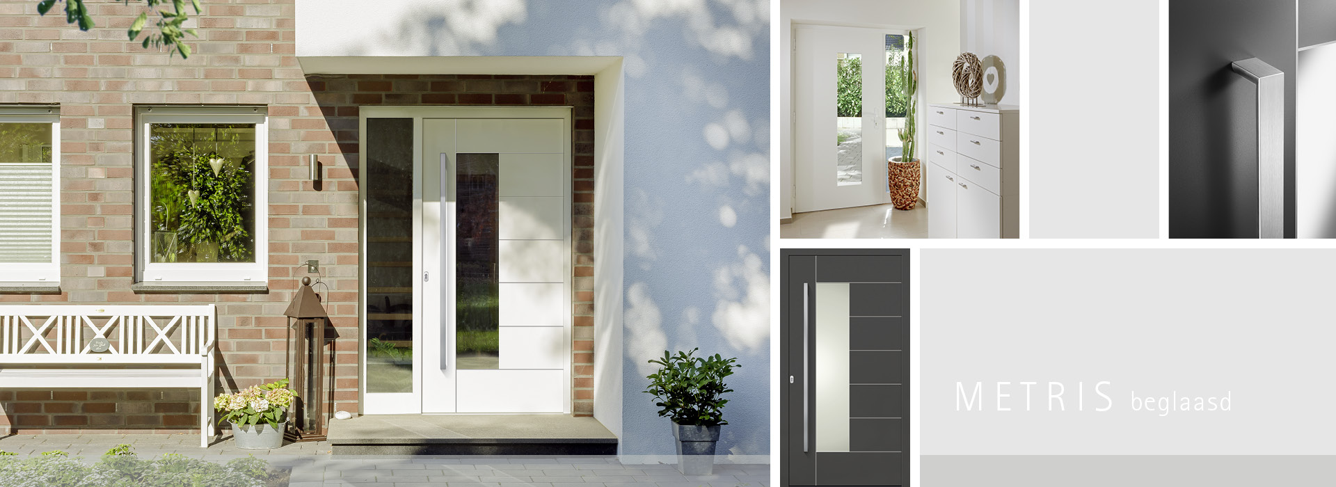 Fijne roestvast stalen panelen verlenen het oppervlak een nieuwe betekenis. Elegante mat geborstelde roestvast stalen panelen geven de toon aan. Een geometrische rangschikking vormt het basisraster van dit vormgevingssysteem. De oppervlakken van het deurpaneel worden losser doordat fijn geaccentueerde inlegstukken horizontaal en verticaal worden gerangschikt, ofwel als accent wat opgelicht of indien gewenst ook onderhoudsvriendelijk als vlakke uitvoering.