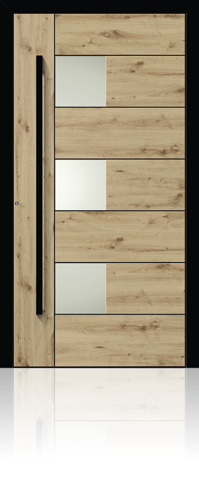 Houdt u van gezellig? Combineer dan zwarte details met een decor van natuurlijk hout. De adeco designfolies evenaren een houten uiterlijk en gevoel en geven de entree een uitnodigende, warme indruk. Kies uit vier huiselijke houttinten: malt, natuur, beton en alpine. Bij de modellen Metris beglaasd, Metris gesloten, Alliso en Caverro, is het mogelijk om de oriëntatie van de folie te combineren (adeco design foiling aD). Hierbij volgt de nerf het ontwerp van de deur, bijvoorbeeld het horizontale inlegwerk.