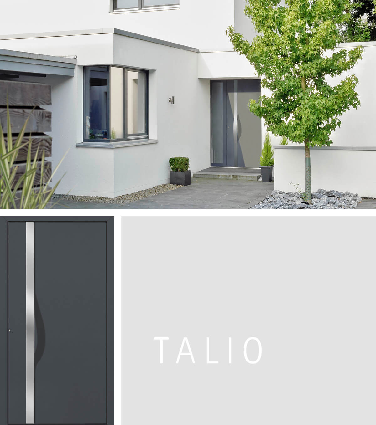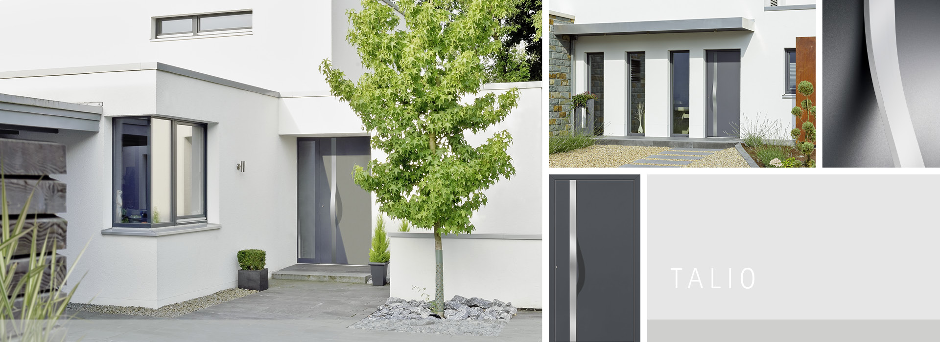 Pochwyt drzwiowy, forma architektoniczna i kolor zapewniają funkcjonalność i estetykę wypełnienia drzwiowego. Takie rozwiązanie skierowane jest do wieloczęściowych portali i wysokich otworów drzwiowych. Oko obserwatora nie jest niczym rozproszone i kieruje się tylko w stronę pochwytu. Jest on funkcjonalny i ergonomicznie ukształtowany. Oszklone elementy boczne wpuszczają światło i zapewniają doświetlenie wnętrza domu. Rola bezpieczeństwa jest również odpowiednio zaprojektowana. Obustronne wypełnienia nakładkowe pełne oferują maksymalną ochronę przed włamaniem, stanowiąc solidną konstrukcję z zastosowaniem zewnętrznego obłogu o grubości 3 mm i wewnętrznego o grubości 2 mm.