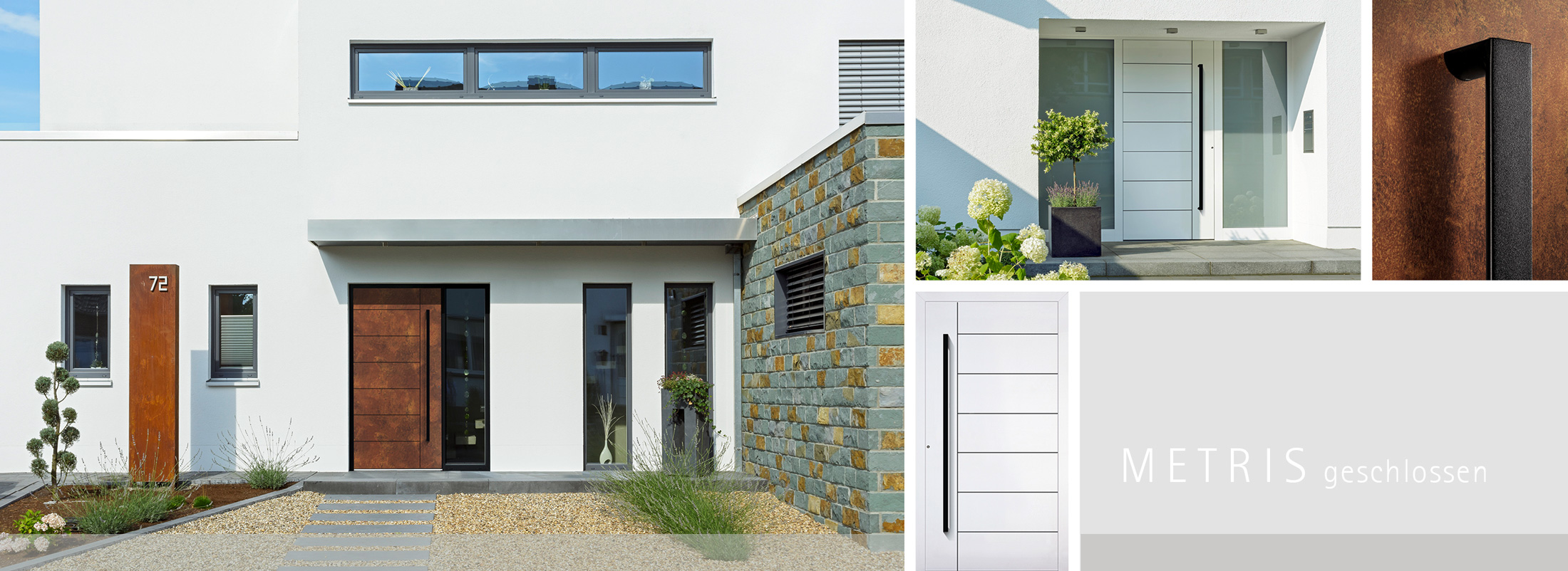 Schwarz als Gestaltungselement ist in der Möbelbranche schon länger im Trend. Aber auch Haustüren gibt die Farbe Schwarz einen neu entdeckten, ganz besonderen Eindruck. Sicher, eine weiße Tür passt zu fast allen Häusern, doch dunkle Töne verleihen mehr Tiefe und neue Gestaltungsmöglichkeiten. Wer es Ton in Ton mag, kombiniert zu den schwarzen Griffen und Applikationen auch den Briefkasten, die Hausnummer oder die Lampen in Schwarz. Und sogar die komplette Tür ist in Schwarz ein echter Hingucker. Haben Sie es gern modern, wählen Sie eine zeitlose Grundfarbe oder eine der trendigen  Designfolien in Rost- oder Betonoptik. Jedes einzelne Türmodell lässt sich so in reichlichen Kombinationsmöglichkeiten individuell gestalten und gibt Ihrem Haus seinen eigenen Charme.