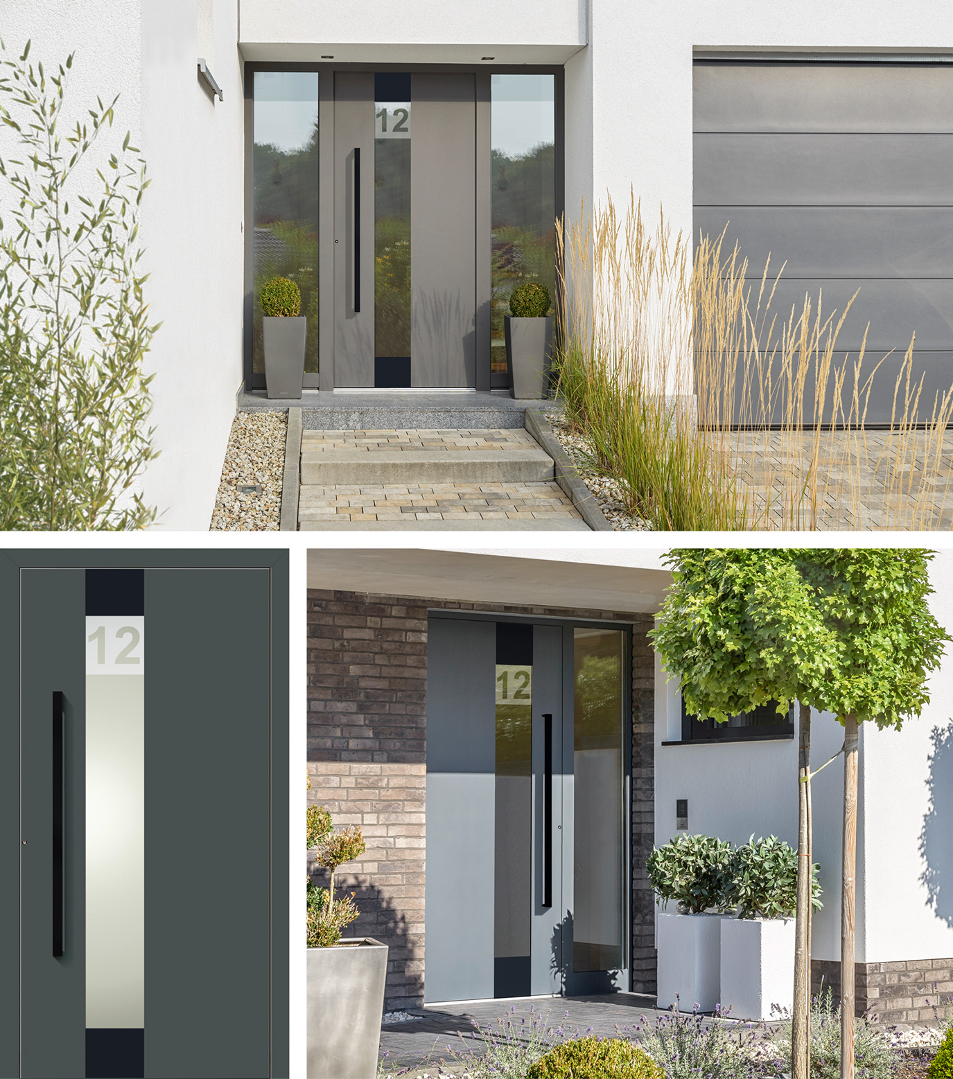 Schwarz als Gestaltungselement ist in der Möbelbranche schon länger im Trend. Aber auch Haustüren gibt die Farbe Schwarz einen neu entdeckten, ganz besonderen Eindruck. Sicher, eine weiße Tür passt zu fast allen Häusern, doch dunkle Töne verleihen mehr Tiefe und neue Gestaltungsmöglichkeiten. Wer es Ton in Ton mag, kombiniert zu den schwarzen Griffen und Applikationen auch den Briefkasten, die Hausnummer oder die Lampen in Schwarz. Und sogar die komplette Tür ist in Schwarz ein echter Hingucker. Haben Sie es gern modern, wählen Sie eine zeitlose Grundfarbe oder eine der trendigen  Designfolien in Rost- oder Betonoptik. Jedes einzelne Türmodell lässt sich so in reichlichen Kombinationsmöglichkeiten individuell gestalten und gibt Ihrem Haus seinen eigenen Charme.